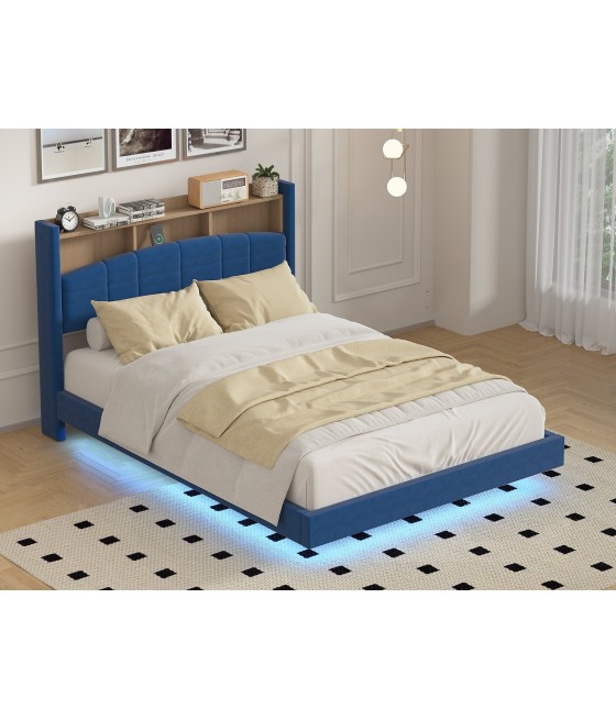 TELEFON : 📞0371 232 745 PAT TAPITAT CATIFEA cu iluminare LED integrate, Albastru Dimensiuni Pat : 160x200 Dimensiuni dulap :150 cm lungime x 210 cm Inaltime x 61 cm adancime Dimensiuni Noptiera :48 cm X 32 cm X 3 PRET - 2949 RON fara saltea  Somiera cu 12 lamele din lemn stratificat  structura din MetalTermen De...